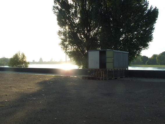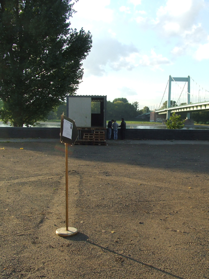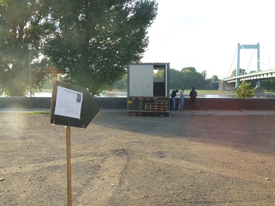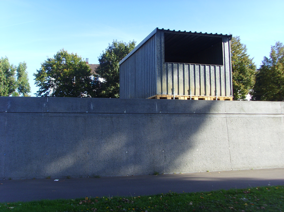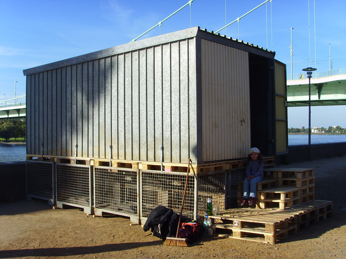 Ohne Titel (Wirtschaftswunder) Installation im öffentlichen Raum Blechgarage, Gitterboxen, Paletten, Keile